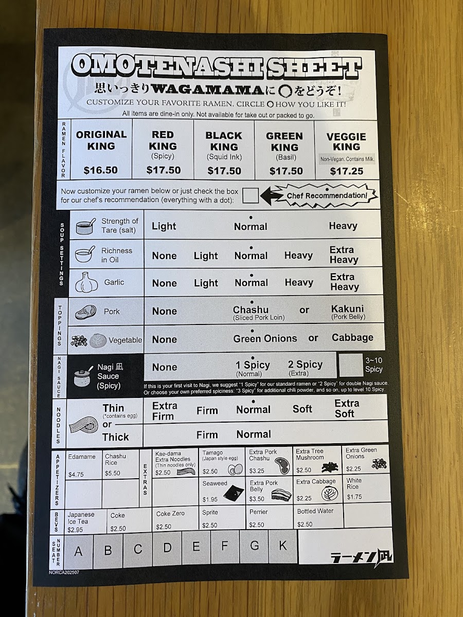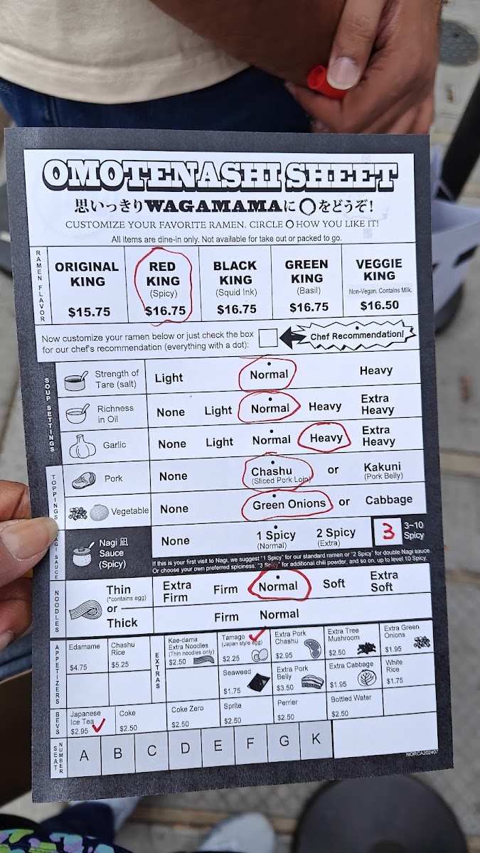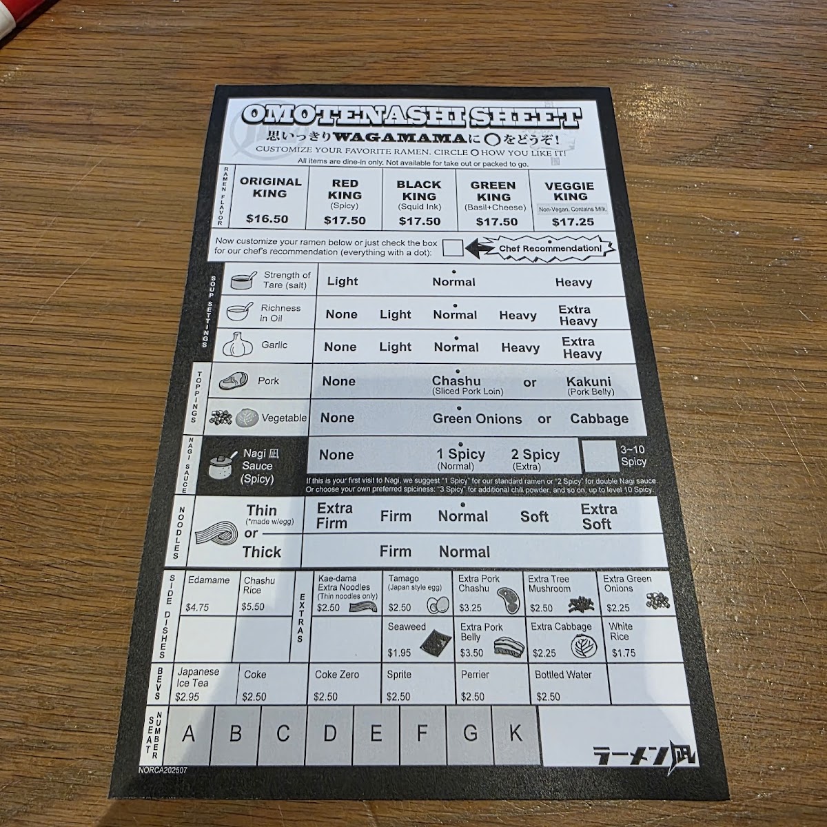 Walking into Ramen Nagi, you’ll notice the lively buzz and cheerful chatter of fellow food lovers while the rhythmic sounds of the kitchen enhance the ambiance. The restaurant’s design offers a warm and inviting space, but it’s important to note that during peak hours, you might find yourself in line—though past patrons affirm that the wait is worth it. Customers like Bhushan Patel and J H laud the depth of the ramen’s flavor, indicating that whether it’s your first visit or you’re a returning regular, the richness of the broth and the crafted experience keeps you coming back. However, be mindful of the spice level; it can be intense, and choosing your desired heat is part of the fun!